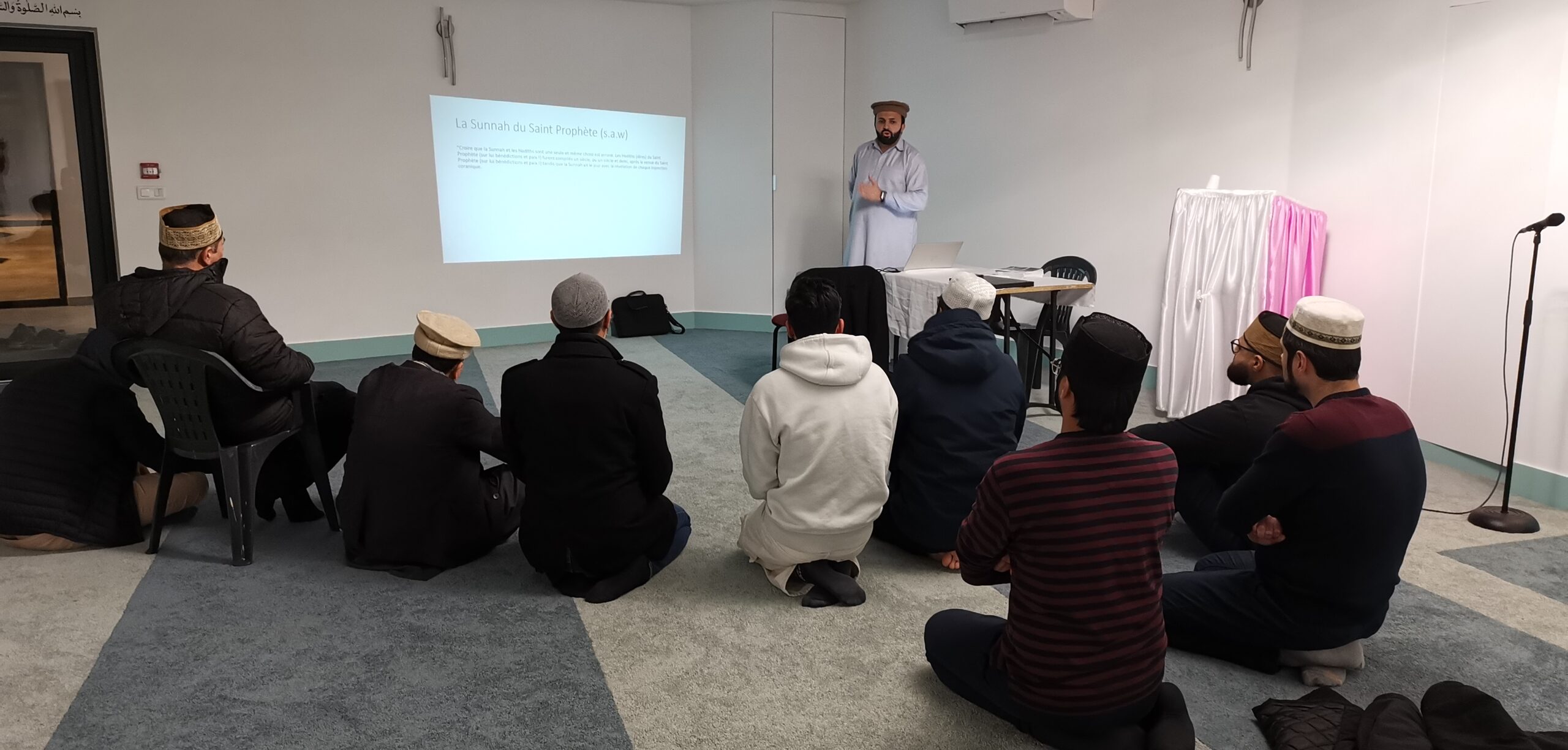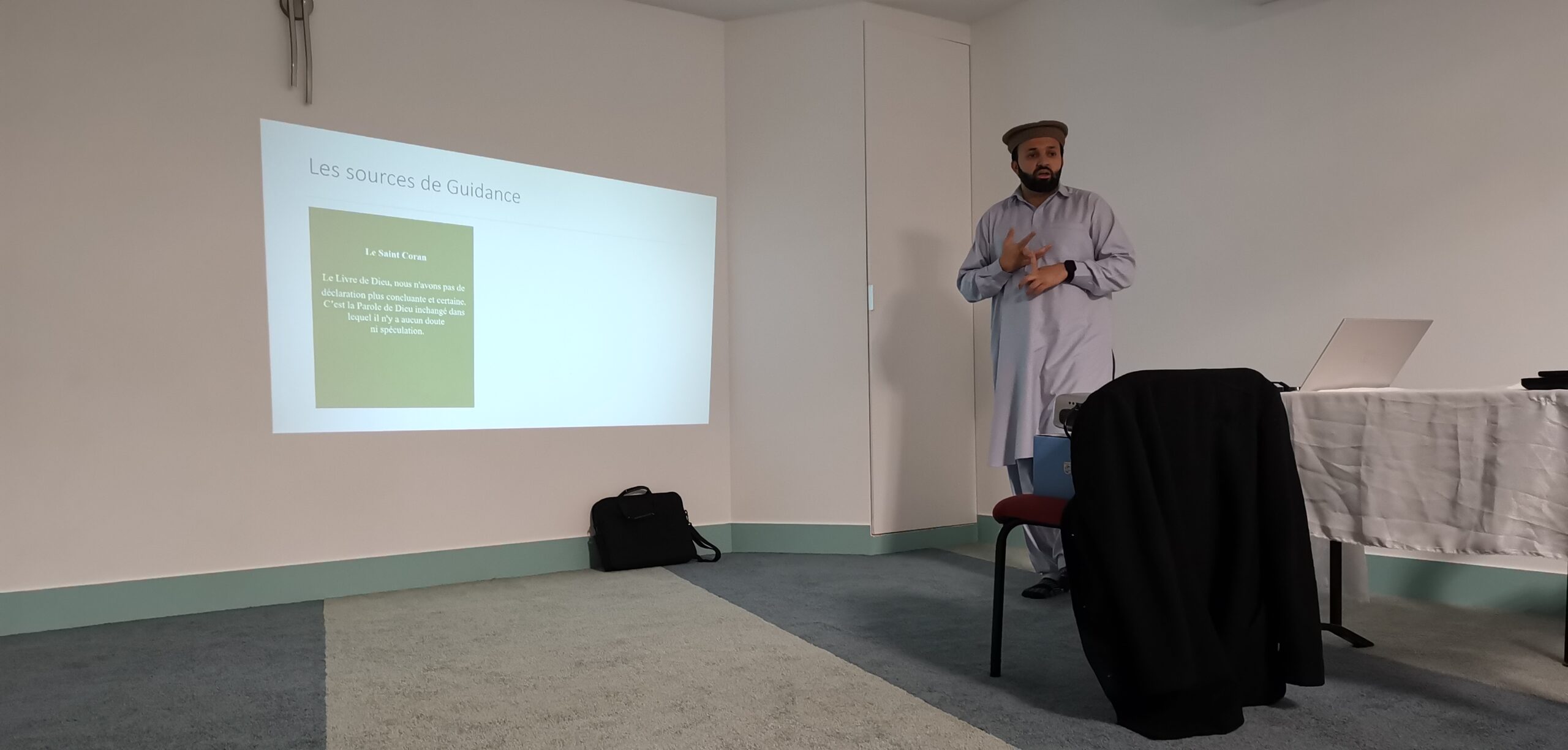 Par la grâce d’Allah le 15 decembre nous avons organisé les classes de Tabligh et ensuite de Talim. Dans la classe de tabligh, Murabi Usama sahib a fait une présentation et a expliqué les différences entre le Coran, les Hadites et les Suunas.